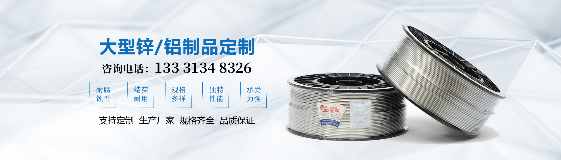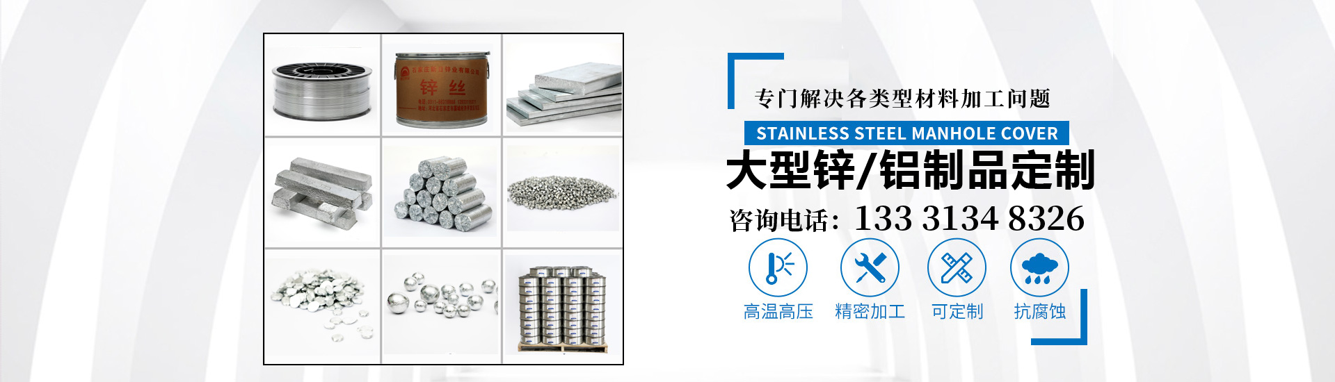 石家庄新日锌业有限公司位于石家庄市藁城经济开发区东区生产锌丝、锌铝合金丝、锌粉、锌球、锌粒、锌板、锌带、锌饼、锌条、锌棒、锌段、锌阳极、锌丸、锌块、铝丝、铝粒、铝丸、铝条等锌、铝制品及锌基合金、锌铝异形材。
