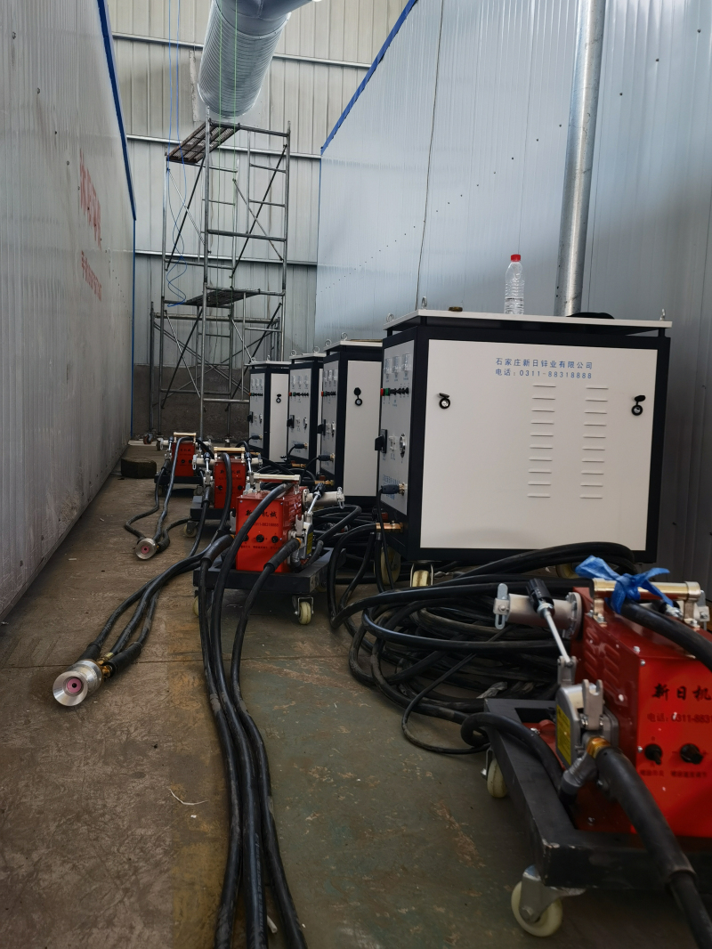 大功率二次雾化电弧喷锌机、喷铝机是集送丝、电源、气体于一体,该设备操作简单、安全、故障率低。喷涂涂层与基体结合良好,电源输出的正、负极直流电在喷枪内稳定可靠的传导给两根金属线材(电流可达600A,电压24-45V),各导电部位导电性良好,雾化后喷涂粒子均匀细小。喷涂电弧稳定,无断弧、爆鸣等现象。